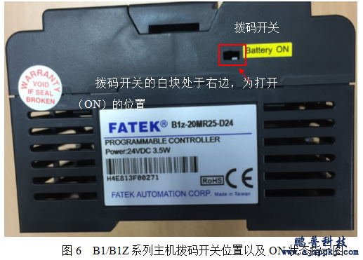 此時,撥碼開關處于打開(ON)的位置,記憶體可以在斷電時候保持數據以及程序。